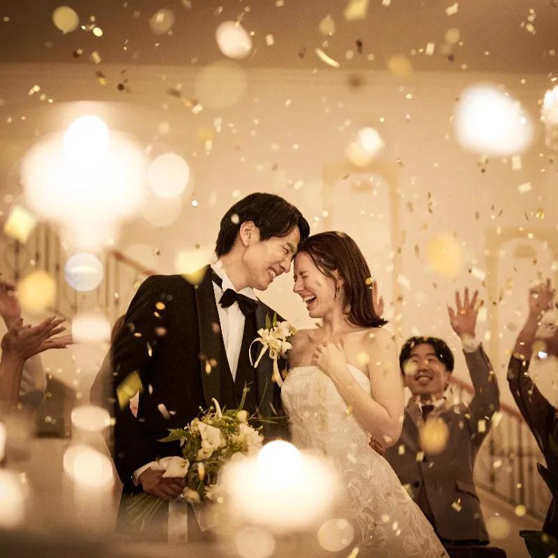 【光り輝く天空のバージンロード】ダイヤモンドを約40万個敷き詰めたチャペル。ドレス姿も映える光煌めくバージンロードを体感!大階段でのアフターセレモニー、親御様へ想いを伝える映像演出も必見です。